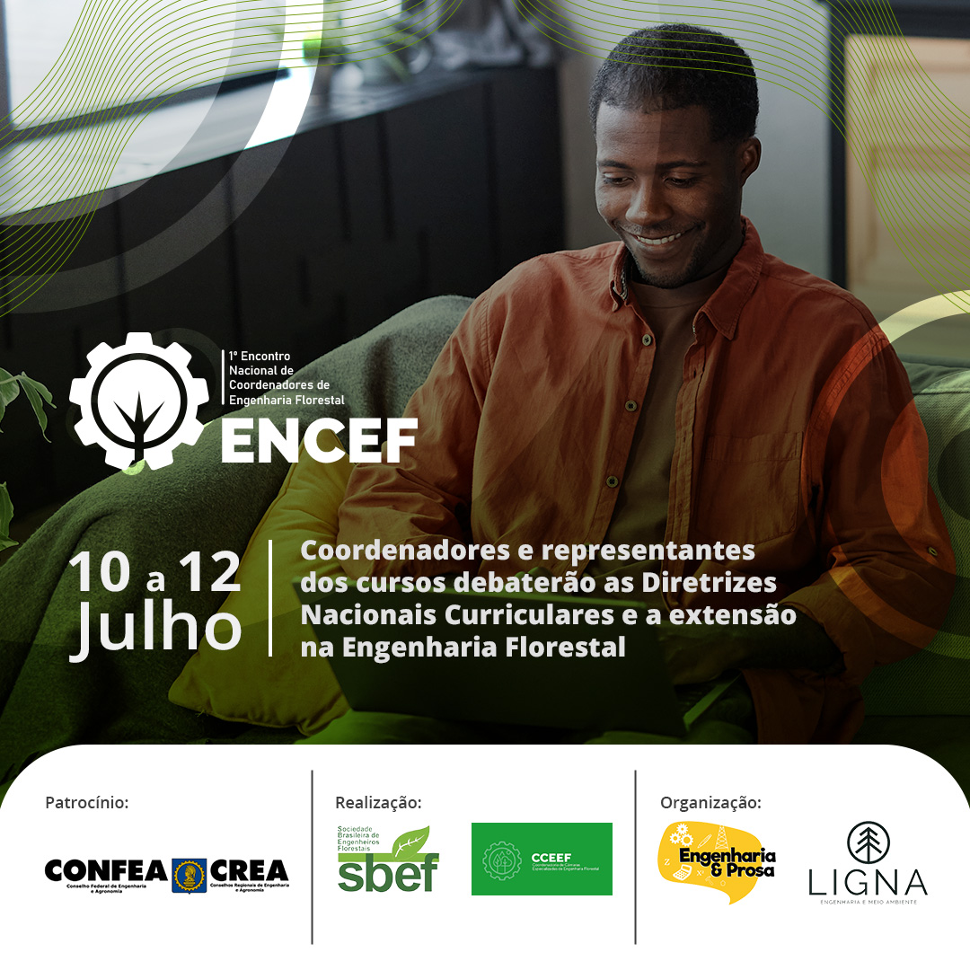 Organizado pela SBEF e a CCEEF, com patrocínio do @confea_, este Encontro, que ocorrerá em Brasília/DF nos dias 10 a 12/07, permitirá que coordenadores(as) e representantes dos cursos possam dialogar sobre as perspectivas das novas Diretrizes Curriculares Nacionais – DCNs da Engenharia Florestal e sobre a inclusão da extensão nos currículos de graduação.