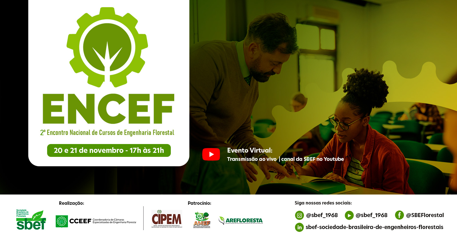 O II Encontro Nacional de Cursos de Engenharia Florestal visa reunir, em ambiente remoto, todos os professores dos cursos de Engenharia Florestal do Brasil, em especial os coordenadores de cursos e representantes de NDE (Núcleo Docente Estruturante) e de Colegiados dos referidos cursos. Também tem como público-alvo os estudantes de Engenharia Florestal do Brasil, com foco nas suas lideranças, tais como os integrantes de Centros/Diretórios Acadêmicos, entre outros, além de profissionais e representantes de associações, empresas e entidades com atuação no setor florestal.
